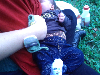 Here is a photo of Sara Bela wearing the jeggings (faux jeans leggings) that her Rachie and her Safta bought for her yesterday! We are sitting in Clark Park after a lovely morning taco date with Noah and Leah. We had an easy night last night, with Cadet Bela only waking up at 1am and 5am and then at 9am! She was wonderfully alert last night and really seemed to enjoy looking at things. Mars and Stinson baby sat last night! Sara Bela cried her heart out for the first part but she slept (like a baby) after they and Shy (who is so wonderful with her) fed her a bottle.